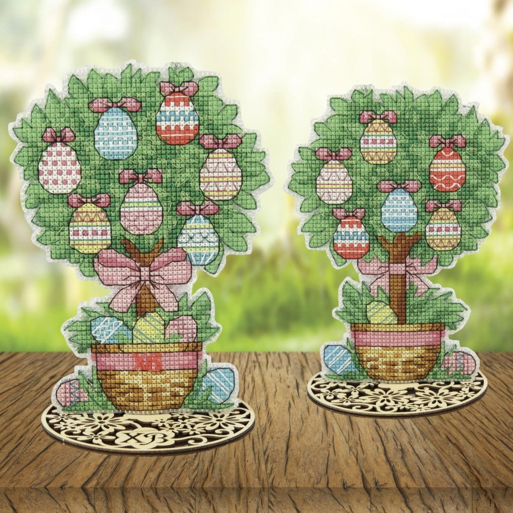 ARBRE DE PÂQUES "Joyeuses Pâques !" Le kit de point de croix compté contient :