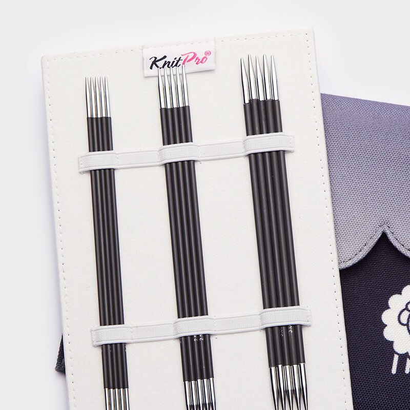 15 cm (6''): El 5 juegos de las agujas de doble punta más utilizadas en los tamaños 2,00 mm (US 0), 2,50 mm (US 1,5), 3,00 mm (US 2,5), 3,50 mm (US 4), 4,00 mm (US 6) en una longitud útil de 15 cm. Su acabado ligero y suave hace que estas agujas de longitud más corta sean perfectas para proyectos de tejido en redondo más estrechos, como gorros o calcetines. Cada juego de 5 (por tamaño) se organiza y se almacena en un elegante estuche de tela gris que seguro llamará la atención.